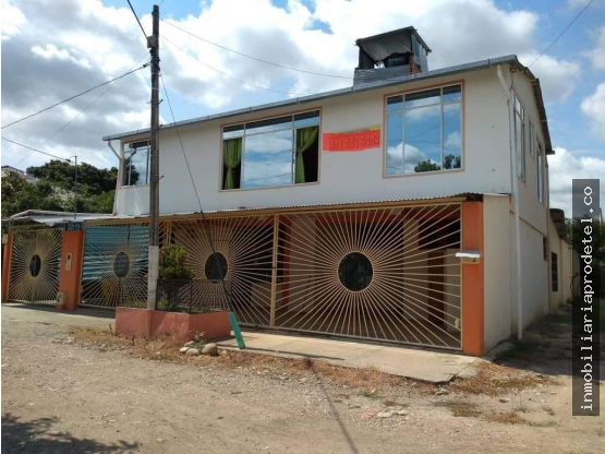 Pesos ColombianosHermosa casa quinta esquinera en venta, ubicada en Tocaima, Cundinamarca, tiene 2 niveles y un área de 17x27. En el primer piso del inmuebles se puede acceder a un local comercial que tiene una pequeña cocina y un baño auxiliar con orinal y lavamanos, un garaje con espacio para 3 vehículos, 5 habitaciones con baño privado, ventiladores y televisión, un salón social, lavadero y la piscina que cuenta con zona de duchas y vestieres. En el segundo piso se encuentra un espacio adaptado como salón social, la cocina, 4 habitaciones mas con baño privado, ventiladores y TV.